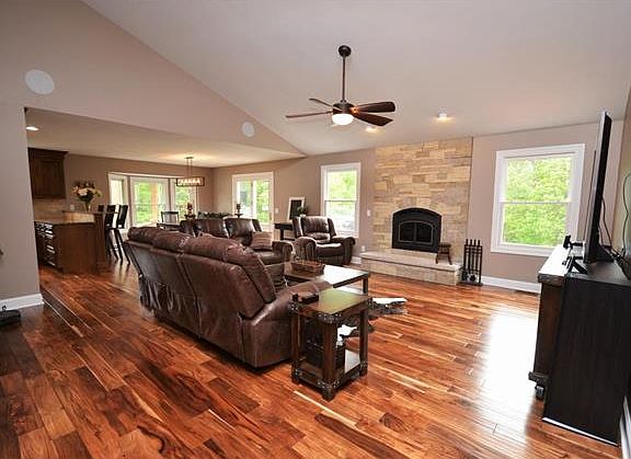 This beautiful custom built 3 Bdr, 3 bath Ranch is recently updated and nestled on 5 wooded acres. The home has new hardwood floors throughout the main level. Imagine the delicious meals you can cook in this updated Kit with custom cabinets, ceramic back splash, butler pantry, granite counters and a breakfast room with bay window overlooking a secluded back yard. Vaulted GR offers an open, warm and inviting space featuring a stone fire place and plant ledge. The adjoined DR has a bay window, coffered ceiling and can double as an office. MBR suite with large walk in closet has it's own 18x14 maintenance free deck and a luxurious shower with a separate tub. The finished walkout LL includes a FR/Rec room, full bar with dishwasher, sink and wine cooler, Exercise room, 3 multipurpose rooms and a full bath. Sit back or entertain on the covered patio with f/p, bar and builtin smoker. Roof is 3 years old. Schedule your showing now to see everything this wonderful home has to offer!