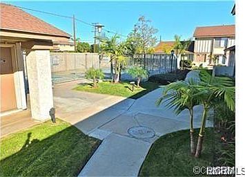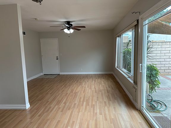 Gorgeous CONDO home in the lovely Villa Palma community. This complex is truly a hidden gem as you enter from the main road. The home itself is beautifully appointed throughout including a very large patio garden area that leads directly to your covered parking with storage. Each bedrooms have mirror closet doors ceilings fans. Dual paned windows throughout, laminate floors, open floor plan with an abundance of natural light. New AC unit installed, Spacious master and lots of storage. Enjoy the lush green belt area and well maintained community pool, spa, poolhouse with restrooms and the laundry is just steps from the condo, End unit. HOA includes trash.