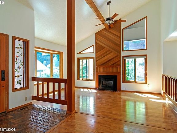 Ultra Private Contemporary with flair. Beautifully remodeled Kitchen with Slab Granite and SS appliances. Dramatic vaults with oversized windows. Spacious, vaulted upper floor Master Suite (needs updating). Two main level bedrooms with Jack and Jill bath. Low maintenance back yard with sprinkler system. Lovely, inviting deck. Seller to credit buyer $3500 toward carpet replacement.