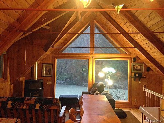 Uniquely beautiful mountain & river views from this well-maintained riverfront home on 100' high bank of Skykomish River in peaceful gated private community w/roads maintained & snow plowed. Make this your vacation retreat or year-round residence with your own 100' private beach. Hot tub on edge of deck over river. Floor to ceiling windows. Cedar/white pine interior. Vaulted ceilings. Fish & boat from your beach. Up close view of resident eagles soaring, beavers/otters at play, salmon/trout.