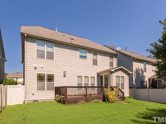 Beautiful 5 bedroom home in Cary. First floor bedroom w/ full bath! Hardwoods throughout most of 1st floor. Formal dining off main foyer. Bright, airy family room w/ fireplace opens to large breakfast nook and large kitchen. Kitchen has tile floors, granite counter tops, SS appliances, and ample storage space. Great master bedroom w/ master bath including dual vanity, tub and separate shower. 2 more spacious bedrooms and full bath upstairs. Great fenced in backyard w/ large deck, great for entertaining.