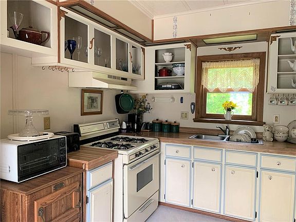 Peaceful retreat for a weekend get-a-way or to live. This singlewide Home sets back nicely off the road to offer privacy. Master bedroom has sliding doors to enclosed sunroom. The bath offers garden tub and standup shower. Kitchen is adorable flowing nicely to inviting dining room then the spacious living room with a fireplace. 2 working wells, Large garage has electric and office. Nature around will not disappoint!! Property is an Estate and Sold as in condition. Many of the furnishings can stay. Please do not walk property without a Realtor.
