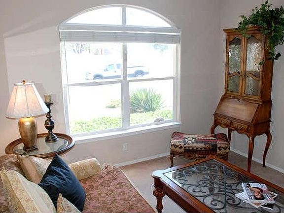 Elegant 3bdrm/2.5bath/3CG home in Enchanted Hills. Inviting living room w/Kiva fireplace, ceiling fan, & raised ceiling. Gourmet kitchen w/double oven, tile backsplash & recessed lighting. Breakfast nook & bar seating. Formal Dining or Office/Study. Master Bdrm w/Full Bath, Double Vanity, Garden Tub & Separate Shower. Cabinets in Utility Room. All appliances convey. Upgraded light fixtures & nichos. Lovely backyard w/SW Landscaping & Lattice Covered Patio great for entertaining friends & family!
