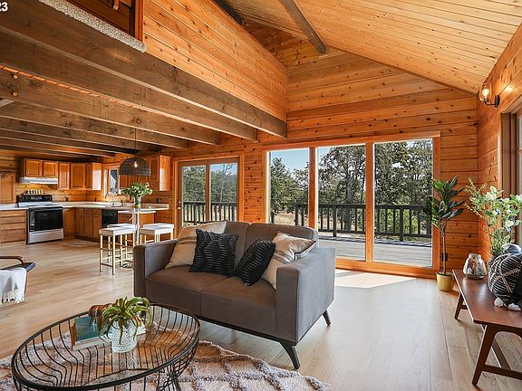 Freshly updated cabin with expansive territorial views of the gorge with a large, detached shop-garage and 800 sq foot potential ADU or home office above the garage gives this property income potential or a lovely, detached work live space. The interior of the main home offers abundant natural light, warm natural woodwork throughout, a large stone wood burning fireplace, newly refinished hard wood floors, new carpet, quartz counters, new windows & doors, new metal roof, updated bathrooms, new washer and dryer and a new mini split for efficient heating and cooling. Enjoy views from a large wrap around deck perfect for entertaining and or enjoying early morning sunrises or the ever-changing skies during a sunset. This home is a soothing oasis just minutes from amenities. Truly move in ready, all the major work has been completed. The property is ready to be enjoyed! Buyer to verify with county, all requirements to make the living area above garage a legal ADU. Seller is a licensed real estate agent.