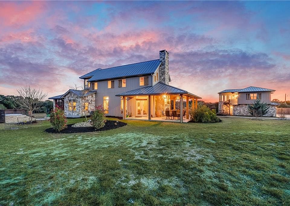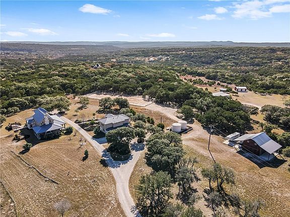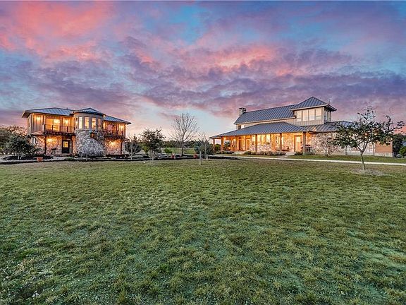 New Ranch Listing in Charming Wimberley Texas! This Equestrian Compound is the property you dream of when you think of the Texas Hill Country. This rural property w/a 2,357+/- SQ.FT. 2-Bedroom & 2.5-Bath Main Home & 1,205+/-SQ.FT. 1-Bedroom & 1.5-Bath Guest Carriage House is on 12.3+/- bucolic acres, surrounded by majestic live oaks, native grasses, wildflowers & wildlife. Wrapping the home in outdoor living space, the three-sided porch offers a rock wood-burning fireplace and dining to enjoy the nature surrounding you. The home is clad w/native stone topped w/standing-seam metal roof, a French Country feel with a mix of charming rustic accents & casual Texas elegance. Natural rock continues thru the interior w/a stone fireplace reaching to the soaring trussed ceiling in the living room & accenting the dining room. Throughout youll find warm, organic finishes like long-leaf pine floors, burnished wood countertops & native limestone accents. A large great room is illuminated on three sides w/both view-level & clerestory windows, flooding the space w/light. The kitchen blends luxury fittings w/cabinetry that fits the rural aesthetic. The master bedroom suite has a private screened porch and a secluded hot tub perfect for those cool nights. Every Texan needs their steed, and this property offers plenty of room for your equine friends with a four-stall horse barn & fenced riding arena. The property also includes a large carriage house with full guest-suite that includes a living room, kitchen/dining and bedroom. Wisteria-draped balconies flank a windowed turret that offers a sun-drenched view of the property. Enjoy hosting family & friends in this cozy space, perhaps offering a place to stay the night after an informal gathering in the party barn - this flexible space is great for entertaining, but could also be a workshop, boat storage or space for animals. This special property is the ultimate Hill Country escape. Make it your own slice of Texas heaven.