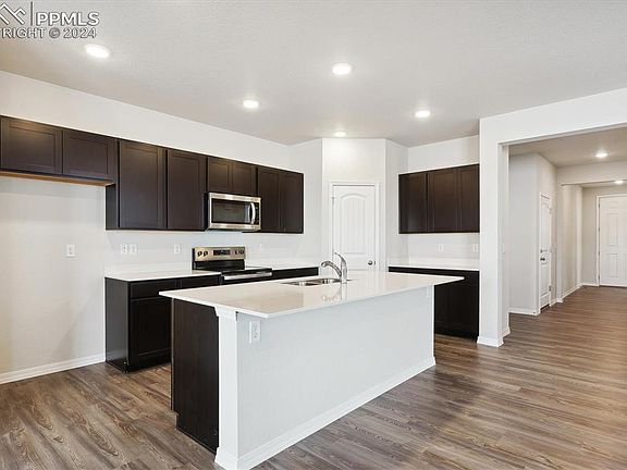 MOVE-IN READY! The elegant Livingston plan welcomes you with long foyer, leading you past two comfortable bedrooms—sharing a full hall bath—and out into a beautiful open-concept layout that's perfect for relaxing, dining, and entertaining. A large kitchen boasts a center island and corner walk-in pantry and overlooks a generous great room and charming dining area with access to the backyard. Secluded at the back of the home, a spacious owner's bedroom features a private en-suite bath and a roomy walk-in closet. You'll also appreciate a laundry room conveniently located in the center of the floor plan. Welcome to Bradley Heights, a new home community offering inspired new homes for sale in Colorado Springs. Nestled in a tranquil neighborhood just outside of downtown Colorado Springs, Bradley Heights offers easy access to regional employment and entertainment hubs, plus the Colorado Springs Airport and the Peterson Space Force Base. You'll also enjoy the beautiful scenery and quick access to an abundance of recreational activities like hiking trails, native wildlife viewing, the Big Johnson Reservoir and Bluestem Prairie Open Space—boasting hundreds of acres of prairie land. Bradley Heights is also a short distance from prime shopping, dining and retail options!