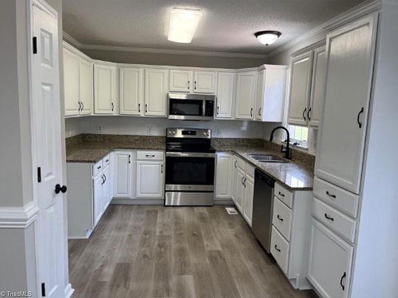 COMING SOON! Newly renovated gem on nearly an acre of land! No city taxes! This stunning home boasts modern LVP flooring throughout and fresh interior paint. Beautifully updated kitchen with granite countertops, tile backsplash, and stainless steel appliances. Vaulted ceilings in living room give it such a roomy feel. Carpet in bedrooms is brand new! Nestled on a spacious lot, this property offers ample outdoor space for gardening and entertaining. Don't miss this opportunity to own a move-in-ready home in a peaceful setting. Schedule your showing today!