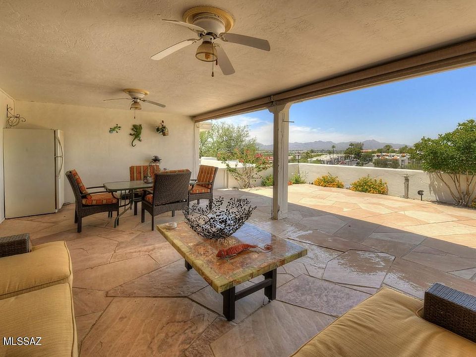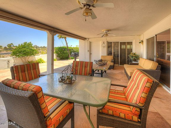 * Seller has lived, loved, and cared for this home for many years. She hates to leave, but a second adventure calls. So tastefully done with an eye for classic yet casual. Every detail is top of the line. A kitchen with Portabella cabinets, granite countertops, and a copper sink. The breakfast area is anything but a simple nook. So inviting w/ built ins makes it the perfect spot for a meal or the morning crossword. The living and dining are blessed with wall to wall glass doors looking out over the Tucson Valley. Sunsets are magnificent and the huge flagstone patio was meant for outdoor living. You just could not live here without wanting to dine alfresco. 3 bed/2 ba. currently 1 bed used as denBest description of this? Serene and private. 55 plus comm.