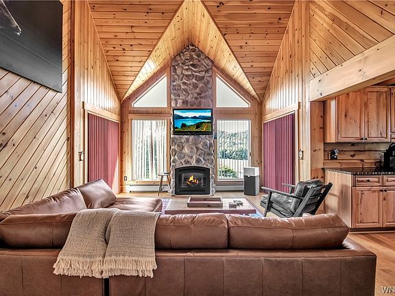Nestled just minutes from Ellicottville and its world-class resorts, this secluded country retreat is a turnkey investment opportunity or an ideal full-time residence. Spanning 150.85 acres of pristine, park-like surroundings, the fully furnished modern log home offers sophisticated living space. It has 5 spacious bedrooms and 4.5 bathrooms, and ample room for family and guests. The architectural gem features a grand living area with an oversized stone gas fireplace framed by soaring cathedral ceilings and floor-to-ceiling windows that welcome natural light. Take in the commanding views of the expansive stocked pond and the majestic Allegany Mountains, creating an idyllic backdrop for relaxation and contemplation. Entertain in style in the formal dining room seamlessly connected to the gourmet kitchen, with high-end features. Every detail exudes quality and sophistication, making this property a perfect oasis. Designed for comfort and functionality, a true escape from the hustle and bustle of everyday life. Sq footage includes lower level as measured by agent. This property provides provide a sense of tranquility and privacy that discerning buyers seek in a high-end property.