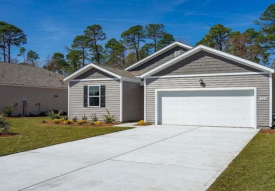 This new home offers three bedrooms all on one level and is located in a brand new, natural gas community in Carolina Forest! The Parks of Carolina Forest is a picturesque setting of ponds, an amazing amenity center, and park of the majestic "Ten Oaks" with a walking trail to get to the Carolina Forest library. New great cabinet and counter space with a breakfast bar, spacious pantry, plenty of closets for storage, and low maintenance laminate flooring throughout the main living areas that gives the look of wood with easy care and cleanup. The private primary bedroom also offers a large walk-in closet and end suite bath with double vanity and 5' shower. Enjoy the warm, coastal weather on the large rear patio! Blinds were also added throughout the home. Renter is responsible for all utilities