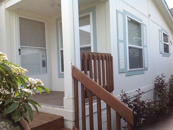 Accepted Offer with Contingencies. Lots of natural light, all-electric NW Homebuilders manufactured home in all-age park! Well designed floor plan w/vaulted prismatic ceiling in LR, skylight in fully applianced Kit w/breakfast bar adjacent to dining area. Hall BA w/tub/sh combo; MBA has garden tub & separate WI shower. Large 30' outdoor custom deck w/BBQ & bar area surrounded by arborvitae for privacy. Carport tandem parks several vehicles. Low maintenance yard w/raised bed. Storage shed in backyard + shop w/electricity at end of carport.