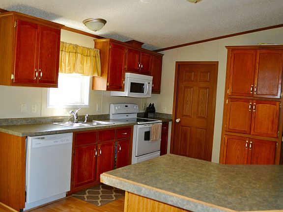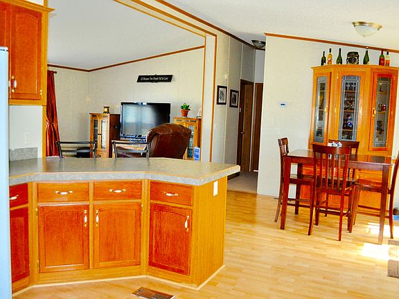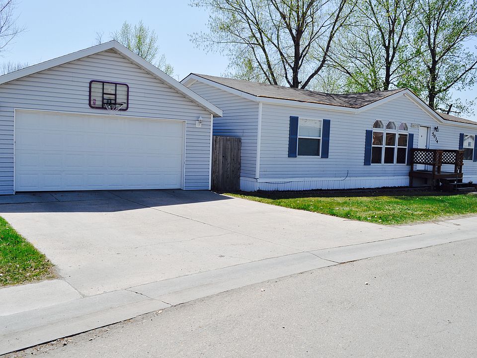 Charming open floor plan that is spacious and has vaulted ceilings and nice natural lighting! Features 3 bedrooms, 2 baths, newer appliances. Larger lot size with fenced in yard, deck and shed. Double stall detached garage. Lot rent includes water, sewer and garbage. Garage dimensions: Back-22.83ft, side-14ft. Lot size: Front of lot-92.55ft, side of lot-88.44ft.