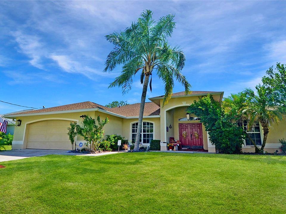 Welcome to your dream retreat in North Port, Florida! This 3 bed, 2 bath, 2 car garage home sits on a sizeable 10,000 square foot lot, adorned with scenic views of nature and fresh water canal. The canal gives residents a great opportunity to kayak, or fish as you please from your own wood dock. Upon entering the home, you'll discover a mindful split floor plan design, giving both privacy and functionality for occupants. The nucleus of the home is the spacious kitchen, possessing stainless steel appliances, pendant lighting, a centrally located island ideal for meal preparation, and eating space where you can enjoy morning coffee or small meal. The primary bedroom presents as a veracious haven, offering a calm escape with sliding doors to the lanai and pair of walk-in closets that can accommodate any wardrobe with ease. The en-suite primary bath contains a lush garden tub, separate walk-in shower, and dual sinks that helps create the ultimate spa area. Step out into the lanai for a true feel of the Florida lifestyle. The back of the home has a screened-in lanai, framing the perfect space for outdoor dining and unwinding. Neighboring the lanai, you'll find an independent patio where you can rest and embrace the Florida sun and canal water view. A significant feature to highlight is the exceptional seclusion of the backyard, which aids in maintaining the private oasis constructed for maximum relaxation and connection to nature. Other notable features of this home include a 2022 roof, hurricane shutters, and convenient storage shed for some additional storage. The home is approximately 5 miles from I-75, and within 10 minutes of multiple restaurants, shopping opportunities, grocery, and a Sarasota Memorial ER & Care Center. Don't miss the chance to make this North Port property your very own!