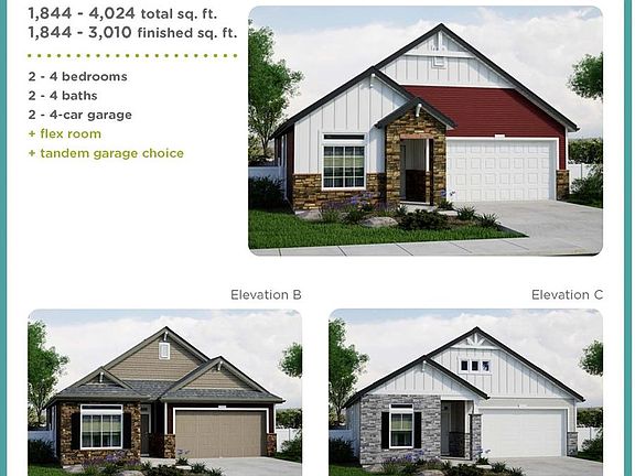 Welcome to the Rendezvous! This spacious home boasts 4024 total sq ft and 2110 finished sq ft. with 2 bedrooms and adjacent full bathrooms, Spa shower at primary bath, a guest suite with private bath, dining room, flex room, 2-car garage, covered patio, Cafe kitchen, fireplace at greatroom and unfinished basement. Elevation C.