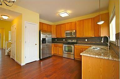 Priced to sell for this completely updated light, bright 3 bed/3 bath home. Rich-hued oak floors throughout main level. Soaring ceilings with gorgeous chandelier in living room. Tons of cabinet space in kitchen with granite slab counters, glass tile backsplash, and brand-new stainless appliances! Brand new carpet and paint. Surround sound in family room. Large bedrooms with walk-in closets. Laundry perfectly situated near bedrooms. Private backyard with stamped concrete and mature trees. Window coverings included. Designer lighting throughout. And close to neighborhood parks and easy access to highway. Will go fast! Don't miss out!