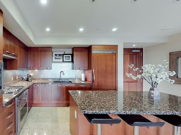 - Recessed Lighting, Stone Counters, High Ceilings (9 Feet+), Open Floor Plan, Balcony