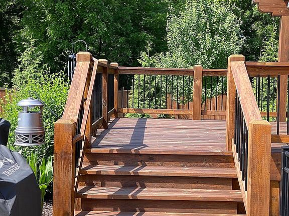 A BEAUTIFUL blend of Nature & Ranch Style Living in the City!!! The ULTIMATE place to call home! A Stunning, updated reverse ranch on nearly an ACRE ! Step into high style with hardwood floors on the entire main level! A dream kitchen with creamy French country cabinetry, high end appliances & a HUGE walk-in pantry. The daylight lower level makes entertaining a breeze with a 2nd fireplace and walk-up bar with wine fridge. SPECTACULAR backyard with new cedar pergola deck plus oversized patio for grilling fun- fully fenced- well landscaped- irrigation system - lilac trees!! The lot goes beyond the fence so you have premium privacy with a backdrop of trees. The Front yard view is extra scenic with a historic farm pond in sight at end of cul-de-sac. Now for the GARAGE- epoxy floor and crystal clean plus a side exit door!!Extra highlights include: plantation Shutters- new carpeting on stairs- security system- nest thermostat- Google fiber available. Working from home is extra easy with sunny office with a step in closet for files. The lower bedroom has a super sized closets & there is even a finished place under the stairs for tiny tots & toys. The battery backup sump is located in the storage room that can easily be a home gym or hobby area. Excellent location and easy highway connections - Close to parks and athletic fields and shopping. Exterior paint in 2017. Deck sunshades & pergola lights stay! 2021-04-02
