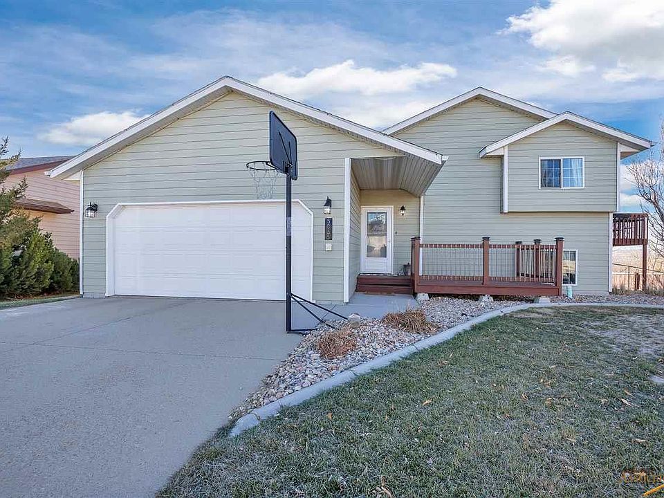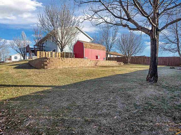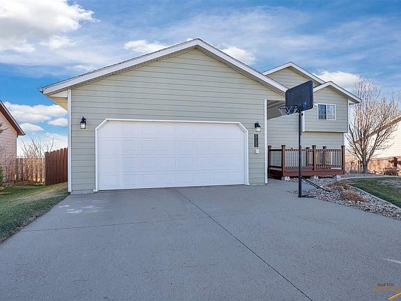 Well kept and move-in ready home near Rapid Valley Schools. Even the backyard shed is cute! Upstairs common space features vaulted ceiling, great natural light and kitchen with some upgraded appliances and large pantry. Home could be easily converted to 4 bedroom (room size is 10x11 and doors are in shed) or use the bonus space for playroom or office. The outdoor space is top notch with lovely decks (front and back) and a large concrete patio area. Enjoy picturesque views of the Black hills - including Mt. Rushmore. Yard has been professionally landscaped with sprinkler system, concrete curb beds and mature trees. Master bedroom has double closets for storage space.