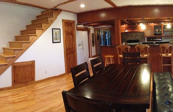 Beautiful 3,500 sq ft custom home for sale by owner. Enjoy year-round magnificent mountain views on a two acre lot that features a paved circle drive, an old grain silo and plenty of level area for outdoor recreation. The lot also has plenty of old growth oak, walnut and sycamore trees. No HOA fees, but property adjoins the upscale Eden Acres subdivision. You can enjoy the sounds of the nearby rushing stream, but the home is well out of the flood plain so flood insurance isn't needed. The home was completely remodeled in 2014 with substantial layout updates and artistic touches. The dining room has plenty of storage, lots of light, and adjoins with the completely new gourmet kitchen. The kitchen's new custom oak cabinets feature pull-out pantries and soft-close drawers, finished with granite and brick accents. Exposed heart pine beams on the first floor have all been refinished and are stunning. The downstairs features a large living room with a wood burning fireplace and T&G wood paneling, perfect room to enjoy cold winter evenings. The downstairs master suite has 3' doors and is wheelchair accessible into the bedroom and oversize tiled shower. One bathroom includes custom made vanity with vessel sink and all new fixtures. There is an office space downstairs with a wooded view. Upstairs features a second master suite with a tiled walk-in shower and an oversize closet, and two other oversize bedrooms. There are a total of three bedrooms and two bathrooms upstairs in addition to the downstairs master suite. There is also a spacious carpeted family room upstairs that is wired for surround sound, has a gas fireplace and a built in library nook. Two story deck out back with a fire pit and a large covered front porch offer plenty of space to entertain outside. New heat pump upstairs, new hot water heater and new 400A electric service so that you are prepared for any future growth. Connected to Andrews city water with a septic tank. Home has brick downstairs and vinyl siding upstairs with new double pane windows. All new interior and exterior doors have been installed in this remarkable home that will not disappoint. New 10 x20 outside building with electricity. Newly built fenced playground and treehouse. Move-in ready. More information readily available upon request.