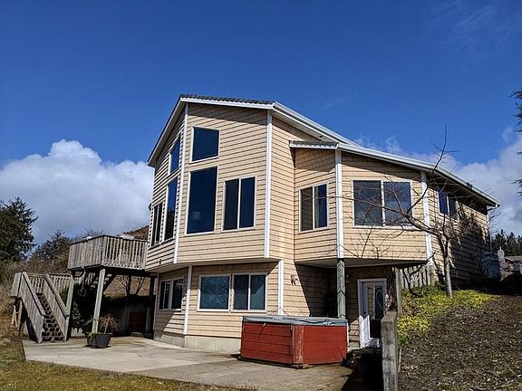 Amazing Sunsets over Tillamook Bay and Bayocean Spit from this gated, upscale neighborhood of Bayridge. Open floor plan and a wall of windows to enjoy the view. This house boasts slab granite and Brazilian marble. Hardwood floors throughout living and dining area. Inlaid mahogany border in the entry way. Loft area with closet has many possibilities - office, studio, craft room. Vinyl shingle siding.