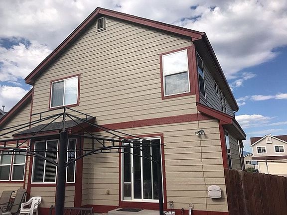 See this beautiful & inviting 2 story home quickly! You enter onto the main level complete with large living room, formal dining room, kitchen with bay window eating nook, all appliances, eating bar, pantry and open to the cozy family room with a walk-out to the backyard. The family room boast a gas fireplace, built in entertainment center with surround sound wiring. You will also find a 1/2 bath and laundry facilities on the main level. The upper level has the large master retreat with vaulted ceilings, 5 piece bath with separate tub & shower. Two additional secondary bedrooms & a full bath can also be found on the upper level. The basement is the perfect setting for a game room with a wet bar or could easily be used as a fourth bedroom. Other amenities include; central air, large concrete patio in the back complete with patio cover & beautiful views out the front. Conveniently located near schools, parks (at corner), shopping, entertainment, restaurants & military bases. Fresh exterior paint...definite must see! Will go quickly.