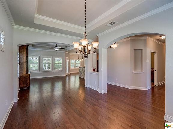 Pristine single owner Jimmy Jacobs Corpus Christi plan-3 true bedrooms & study nook. The yard is spacious & full of trees in back for extra privacy. The home features hardwood floors throughout, large covered back porch & open living spaces. Other special upgrades include: central vacuum system, stainless steel appliances (kitchen plumbed for gas too!) Plantation shutters, water softener, utility room w/ sink & hanging storage, gutters, full sprinkler system, tons of storage in the attic too!