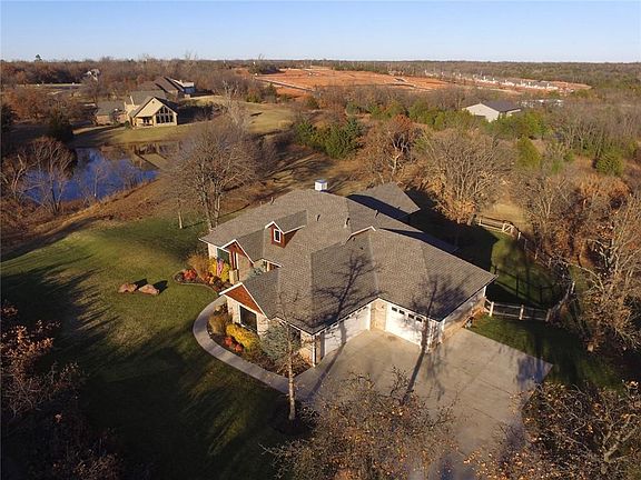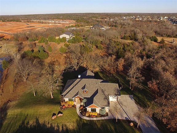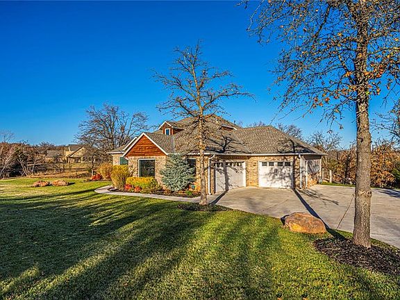 Beautiful NE Edmond home situated on gorgeous 2.35 acre wooded lot with a stocked pond shared with neighbor. Rare walkout basement offers two levels of back patio to enjoy the fabulous backyard. The upper level offers a great room awash in natural light that is perfect for gathering with family & friends. A lovely outdoor deck, complete with grill, allows the opportunity to expand the entertaining outside. The stunning kitchen would make a professional chef swoon with Verona 5 burner gas cooktop, Electrolux full sized side by side refrigerator/freezer, Bosch dishwasher, potfiller, tons of prep space & walk in pantry. The spacious primary bedroom has a gorgeous ensuite bath. The walk-out basement level offers another generous living area complete w/wet bar, a spacious study w/French doors for privacy, 2 beds & a full bath. Gorgeous handscraped wood floors, stacked stone accents, polished wood & granite countertops. Storage galore incl. 350 sq ft of unfinished area in basement.