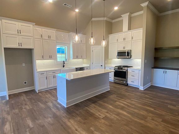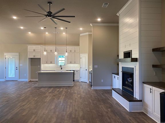 This beautiful home is located in the Brookland School District and is serviced by City Water and Light. The gorgeous open floor plan is 4 bedroom, 2 bath, bonus room and the house boasts 12ft raised ceilings. The exterior is covered with all brick and multiple windows surrounding the breakfast area allowing for plenty of natural light. Tray ceilings are found in the master bedroom, the master bath features a custom tile shower with a glass shower door. Hardwood flooring is found in the great room and hallway, tile in the laundry room, kitchen, and bathrooms. Additional features include crown molding, ceiling fans, prefinished wood shelving units, granite countertops in the kitchen and bathroom, tile backsplash lighting in the kitchen, an electric fireplace, a tankless hot water heater and foam insulation.