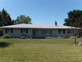 Lovely solid brick ranch offering 3 bedrooms and 2 full baths. New Roof in 2019. Updated kitchen with neutral counter top, glass tiled back splash and solid wood cabinetry. New stove and stylish faucet. Dining room has newly refinished hardwood floor with a sliding glass door that opens to back yard. Living room offers a beautiful stone wall...rumored to be enhanced from local field stone, with fireplace (currently with a pellet stove insert) Updated full bath with new tiled flooring and walls, vanity and faucet and decorative wood contrast wall. Convenient laundry/utility room off of garage, with new garage door. Access to patio and back yard where you can enjoy a nice cook out or bon fire. 3 nice sized bedrooms with hardwood floors (and in hall) Full bath with separate vanity area. Spacious basement with tons of options or for storage. Newer 16 X 12 shed. Great opportunity to watch the most beautiful sunsets! Call today for an appointment starting Sunday June 14th.