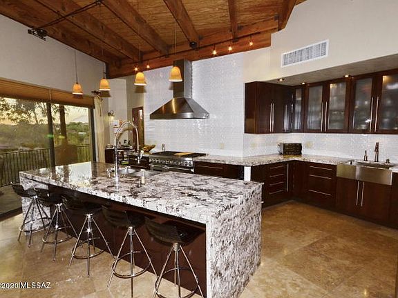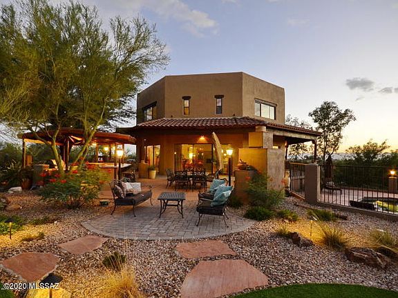 This gorgeous remodeled home nestled in the Catalina Foothills offers 360 degree city & mnt.views + SOLAR POWER-LOW LOW Bills! Open f.plan plus outdoor living area is perfect for entertaining. GUEST HOUSE is perfect for overnite quests/student. Amenities inc; wood & travertine floors,spa tubs in master and main baths, water softener, alarm, RV Space, huge m.closet w/ built ins, and a chef's delight kitchen w/; dual prep areas/sinks, 6 burner gas range,Sub 0, dbl ovens,granite counters & B.Fast bar open to the great rm, living/dining area offers blt in bar w/wine fridge,FP,full bath w/access to outside, a wall of windows framing the mountains & the outdoor living area with built in grill, F/P, & razor edge pool.