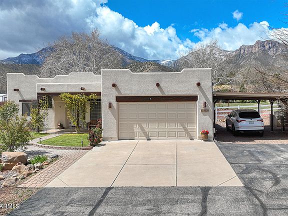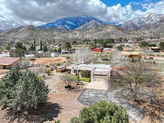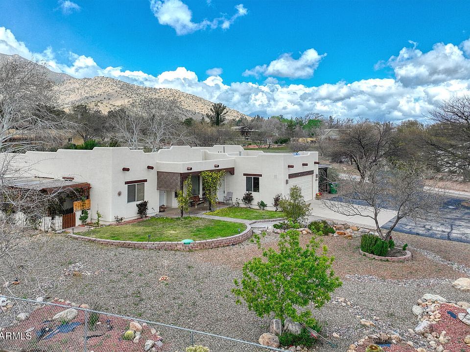 Welcome to your dream home with stunning views of the Huachuca Mountains! This spacious 3 bedroom, 2 bath property boasts 1685 sqft of comfortable living space. The oversized 2nd bedroom is tailor-made for an office or can serve as a versatile den, offering flexibility to suit your lifestyle needs. Step outside onto the partially enclosed covered patio and enjoy the serene surroundings. The property also features a large storage shed, complete with heating, cooling and electricity, making it an ideal space for a hobby room. Situated on a generous 1 acre lot, there's ample space for outdoor activities, complemented by a convenient carport and a 2 car garage. Don't miss out on this exceptional opportunity to call this mountain-view oasis your home!