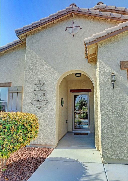 Popular great room floorplan with easy access to outdoor living area. Upgrades galore starting with the premium view lot, upgraded tile floor, full length covered patio, landscaped backyard, ceiling fans, window coverings, upgraded appliances including refrigerator, washer and dryer. and much more. Charming den could be 3rd bedroom but works great as an office with wood-look tile floor. Home is handicap accessible and has recently remodeled shower. Relaxing backyard includes fountain and mountain view. This home is one of the cleanest and best-maintained homes you will see in Pahrump.