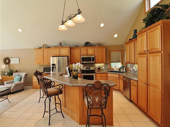 Beautiful golf course homes in picture-perfect locations are a rare find, and you won't want to miss this gem! This meticulously-maintained ranch with finished LL on Hole 9 is a breath of fresh air with high vaulted ceilings and a wall of windows letting in light and golf course views. The sweeping views from the deck alone make this home something really special. Once inside, get ready to check all the boxes on your dream home list - open floor plan, four large BRs and three baths, TWO fireplaces, media/game room with bar, large laundry/mud room and storage galore! The refreshing palette of colors and finishes is move-in ready, just waiting for your design touches. Bonus! Check out the detached 30x32 garage with golf cart space and separate garage door! Set up your tee time schedule, you can move in now and starting living the golf course dream!