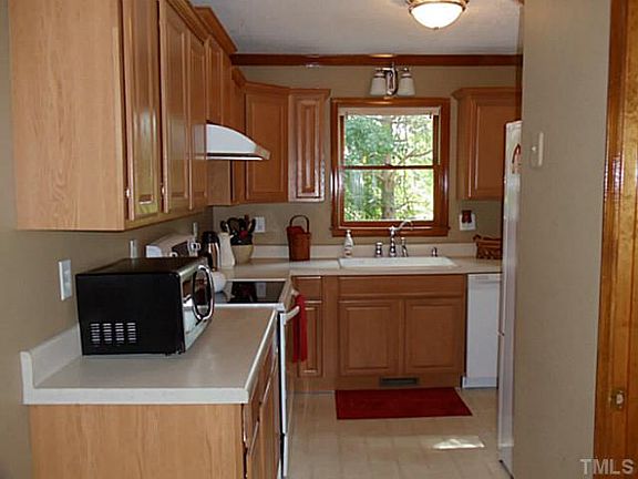 Enjoy the privacy of this 1.62 acre lot in Wake Forest. Three bedroom home is on a large partially wooded lot in Tuckahoe and is convenient to Capital Blvd. Rocking chair front porch, family room w/fireplace,, formal dining room and three upstairs bedrooms. Huge covered deck with skylights overlooks the backyard. Wired storage building/workshop with space for tools and lawn items.