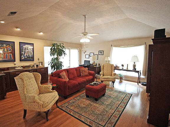 Spacious home with TONS of living area! 3 bedrooms 3.5 baths. Large eat in kitchen with custom cabinets, island, 5 burner cook top & double oven. Living room & dining rooms with wood floors and crown molding. Den with granite fireplace & bar. 2nd den perfect for media room with half bath! Master suite with garden tub & separate shower. 2nd bedroom with private bath. Covered deck with vaulted ceiling for entertaining!