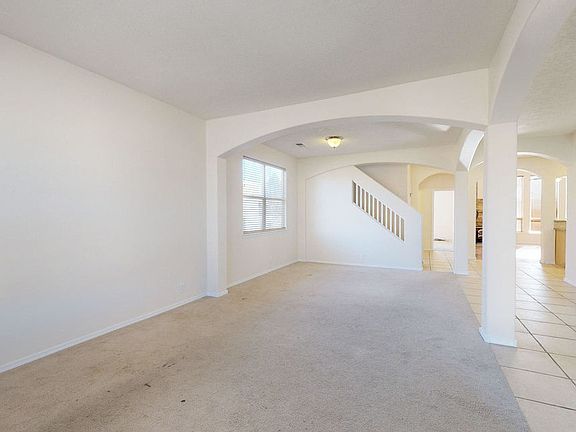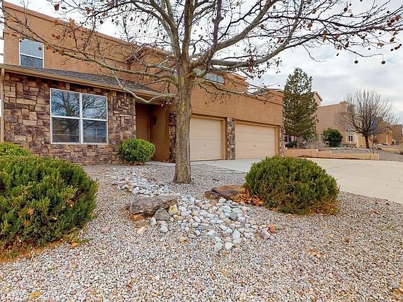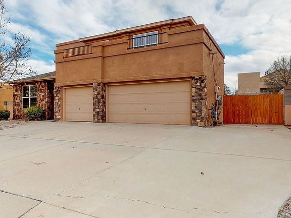 Stunning views of the Sandia Mountains from the upstairs balcony! 5 Bedroom Home with an oversized possible sixth bedroom upstairs and 3 Full Bathrooms. If you enjoy open floorpans, make sure to take a look. FRESH PAINT throughout the Home! The family room has a beautiful wood burning fireplace and plenty of windows for natural light. You will also find a large backyard with R.V. access, a fountain/pond, and a concrete pad that is perfect for outdoor activities.