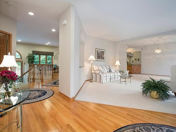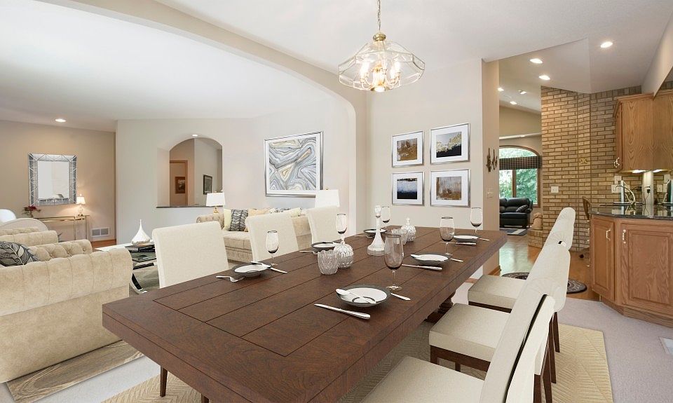 Beautiful 1 level living! Home features large entry looking into light filled Living Room and formal Dining room. Bright, white kit with premium granite counters. Fireplace feature wall in kit and Family room add touch of warmth for Minnesota winters. Built-in office desk right off of kit. Walk out to big patio for entertaining, backs up to private park. Huge owner's suite with heated bathroom floors. Lower Level has large Family room, 3 Bedrooms and another Bathroom. Storage galore! Great access to Highway 169. Snow and lawn care provided by association! Refurbished roof. Few lots left.