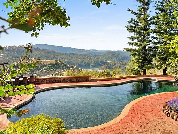 AMAZING PARADISE ESTATE PROPERTY ON 4.59 ACRES WITH LAKE VIEWS! This is the lifestyle you have been searching for, 4-bedroom HOME, POOL, SOLAR, STABLES, SHOP w/ separate electrical panel, covered RV PARKING, HOT TUB, SAUNA, PERGOLA with custom 3-TIER WATERFALL that circulates into the built in KOI POND, and a private FENCED GARDEN AREA with RAISED BEDS and FRUIT TREES! This beautiful, custom nearly 2900 sq foot home features an open floor plan, with a living room boasting with custom stained-glass windows that reflect the natural scenery, a built-in bar and a large deck making this home the ultimate entertainers dream! The kitchen features newer stainless appliances, plentiful storage space, a breakfast bar and a beautiful garden window with views of the plush patio and private courtyard. Home offers two master suites, one neighboring the second living room making this the ideal home for generational living or guest quarters. The plushily landscaped grounds and aggregate walkways welcome you to a large pool with views of Lake Oroville surrounded by stamped concrete patio. In addition to the oversized attached 2 car garage, you will find plenty of storage space with a detached 21X21 metal shop, 30X30X15 covered RV parking area with hook-ups, additional 12X20 carport and stables which consist of 4 lighted stalls, tack/feed room, round pin, 4 fenced pastures and more all of which has full utilities (water and electric). Property is serviced by Del Oro water and has a private well with a new well pump plus features solar, simplifying your comfortable lifestyle plus home has a NEW ROOF (2021) and is equipped with a WHOLE HOUSE GENERATOR. This home is truly a MUST SEE, overlooking the Feather River Canyon and Lake VIEWS, it's a one of a kind home full of countless upgrades! Please ask your agent for a detailed list (in associated docs) and schedule your private showing today to explore this true Paradise Oasis!
