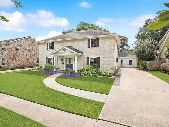 Highlights include 2 fireplaces, an inviting living room with custom millwork and built-ins, and a gracious primary suite with walk-in closet, cedar closet, and private fireplace. Every bedroom features oversized closets, while a 400 sqft detached climate-controlled bonus room provides endless possibilities as an office, studio, or gym. Outdoor living shines with a covered patio, fenced yard, and landscaped grounds, all just blocks from Lake Pontchartrain. Flood Zone X.