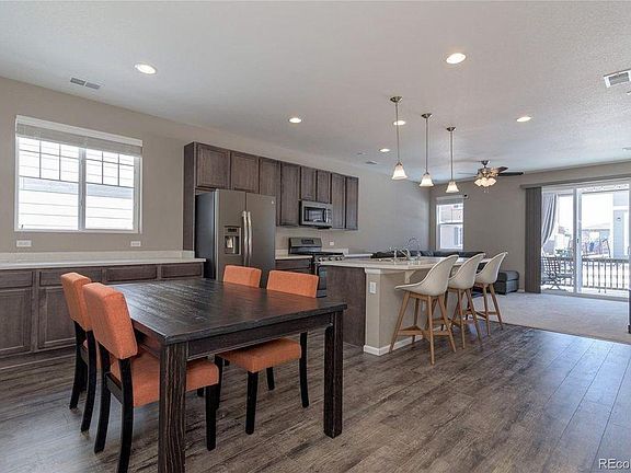 Move in special NO RENT DUE UNTIL NEXT MONTH Moving is stressful. We want to make it easier for you. Don't worry about rent until the first of next month. We want you to spend your time focusing on making this updated house your home. This beautifully maintained home will check all of your boxes. Tall ceilings, an open concept floor plan, and wonderful outdoor living space make this home live large. Enjoy cooking in the upgraded kitchen that includes GE appliances - included refrigerator, built in microwave, and gas range with griddle. The island features plenty of seating! Entertaining in this home is a joy with the built-in dining buffet and easy access to the covered back patio. Included outdoor curtains add a layer of privacy. You will have plenty of room for clothes in the primary bedroom's huge walk-in-closet, and the ensuite bathroom is bright and spacious with its double vanity. The secondary bedrooms boast big windows and plenty of closet space. There is a bonus space off the living room that can be used as an office, playroom, or anything else you may need. Living in this Copperleaf is a true joy. You will meet your neighbors at the pool, fun community food truck nights, and walkable parks! Do not miss your opportunity to call this home! Please submit your Zillow application when requesting a tour. Showings start on Saturday, Cherry Creek schools. Minutes to Southlands, DTC, DIA, Buckley AFB Home Warranty ensures everything runs right. Built in 2017 - Still a new feel to the home Family owned and operated. Trash, pool and clubhouse access are part of the HOA paid for by owner. Utilities are tenant responsibility.