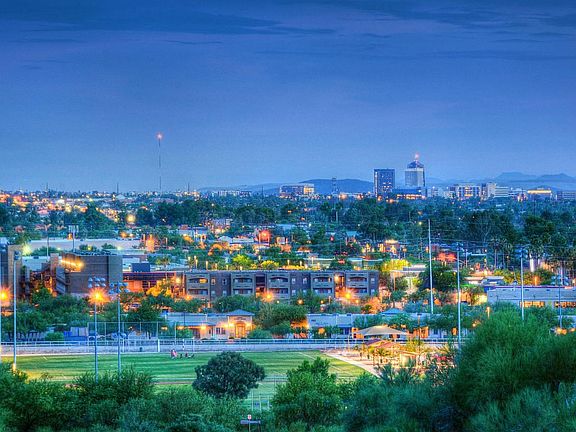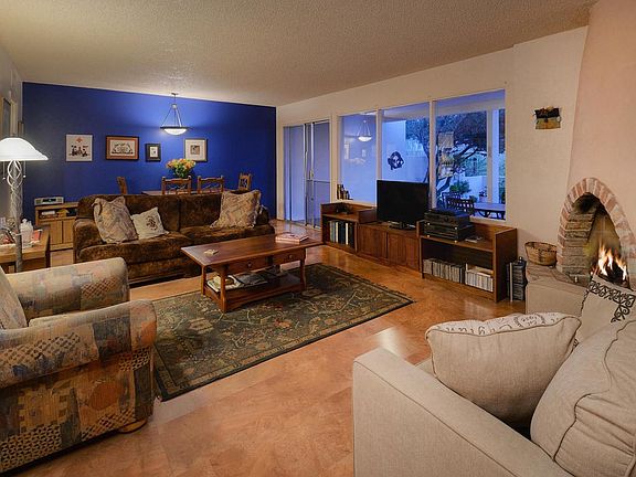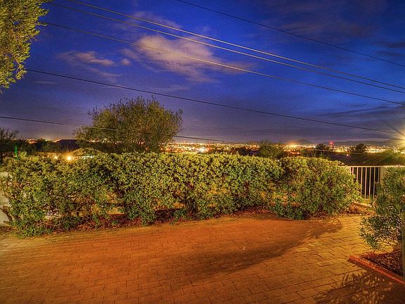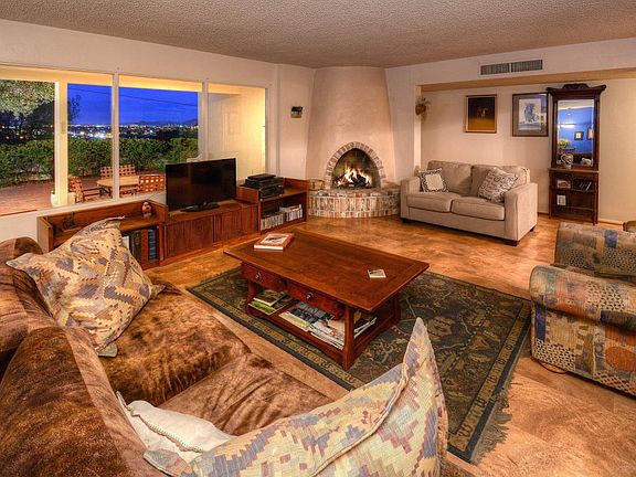 The Dramatic City Light and Sunset Views will simply amaze you! Don't wait to see this wonderful end-unit on an oversized lot with views all the way to Downtown Tucson and beyond! Living room has a charming beehive FP, and the spacious kitchen offers Talavera tile accents and tons of cabinet & counter space. Bedrooms have large arched windows and the master offers a generous walk-in closet and ensuite bath with walk-in shower. 4 skylights make this unit light and bright. Lg covered patio provides a private place to relax and enjoy those views! New dual pane windows in kitchen, master & 1 bdrm. While classified as a "55+ adult community" up to 20% ownership allowed for persons under 55 in this tranquil commty. Great location just minutes from La Encantada, Tucson Mall, U of A, downtown, etc