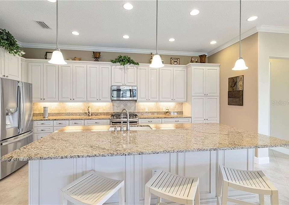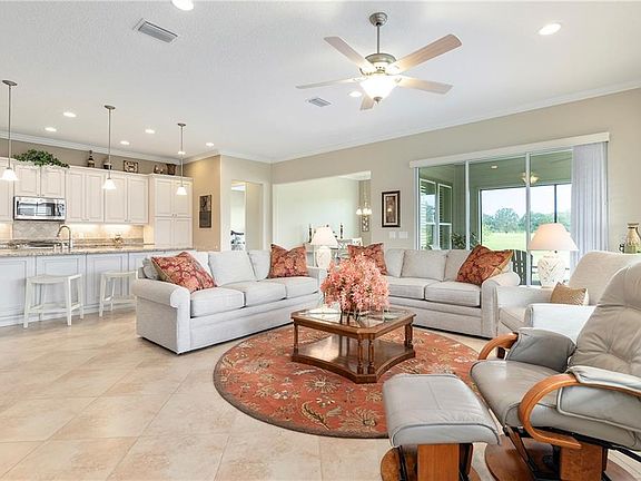 Exquisite home with upgrades you can't purchase as new construction. Deep crown molding throughout the entire home even in the double tray ceilings. There are custom Plantation Shutters throughout the home providing a finished elegant touch. A spectacular location positioned on a conservation parcel with an expansive view, coupled with a spacious buffer between the neighbor to the east. You'll certainly enjoy evenings on the trussed screened lanai that wraps around the house. In the kitchen the creamy wht cabinetry, coupled with the massive granite island, lends itself to entertaining and will easily seat 6 of your new friends. Volume ceilings throughout the home and the beautiful green space views will make dining in the large dining room a pleasure. The master bedroom features a double tray ceiling with crown molding, plantation shutters and a very pretty en-suite bath with dual vanities, granite, a walk-in shower and walk-in closet. This triple split plan features a guest bedroom with en-suite bath with a tub/shower combination and granite vanity. The guest wing also features a study, a powder room for guests, a coat closet and utility closet with access to the garage. The interior laundry room is over-sized with upper and lower wood cabinets, a sink and a nook for washer/dryer.There is also generous counter space should you need secondary desk space for crafts, art or a sewing area. The home has the bonus of a a third car garage for either your golf cart,workshop, storage, fitness/yoga or hobbies. You'll be just a short walk down the sidewalk to one of the numerous trail heads that wind throughout the community. Or you can take a walk to the Salted Brick restaurant, aquatic area pools and spa, fitness center, ball courts, clubhouse and pro shop. Ocala Preserve is such a beautiful community located in the heart of horse country with all the visual beauty from the rolling landscaped grounds and Ocala's gorgeous old Oaks. You're only 5 minutes to grocery shopping and 10 minutes to all of the areas malls, shopping,movies dining and medical. Only 7 minutes to the new World Equestrian Center that will be hosting numerous events throughout 2021. Please view the YouTube video on this wonderful home. Available on 8/22/20 Come enjoy this winter in Ocala Preserves.