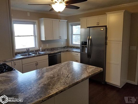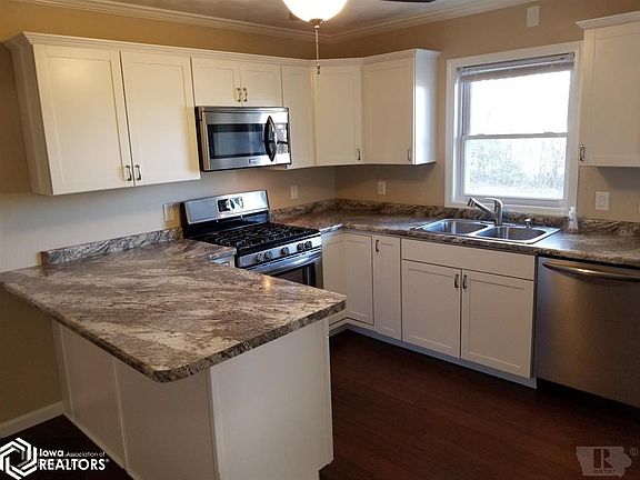 New windows, doors and siding, updated custom tiled bathroom in 2018. Freshly painted and updated wood flooring. 2 car garage. Home is situated on half acre close to town. New septic will be installed. New furnace in 2019. Owner is a licensed Realtor in the state of Iowa.