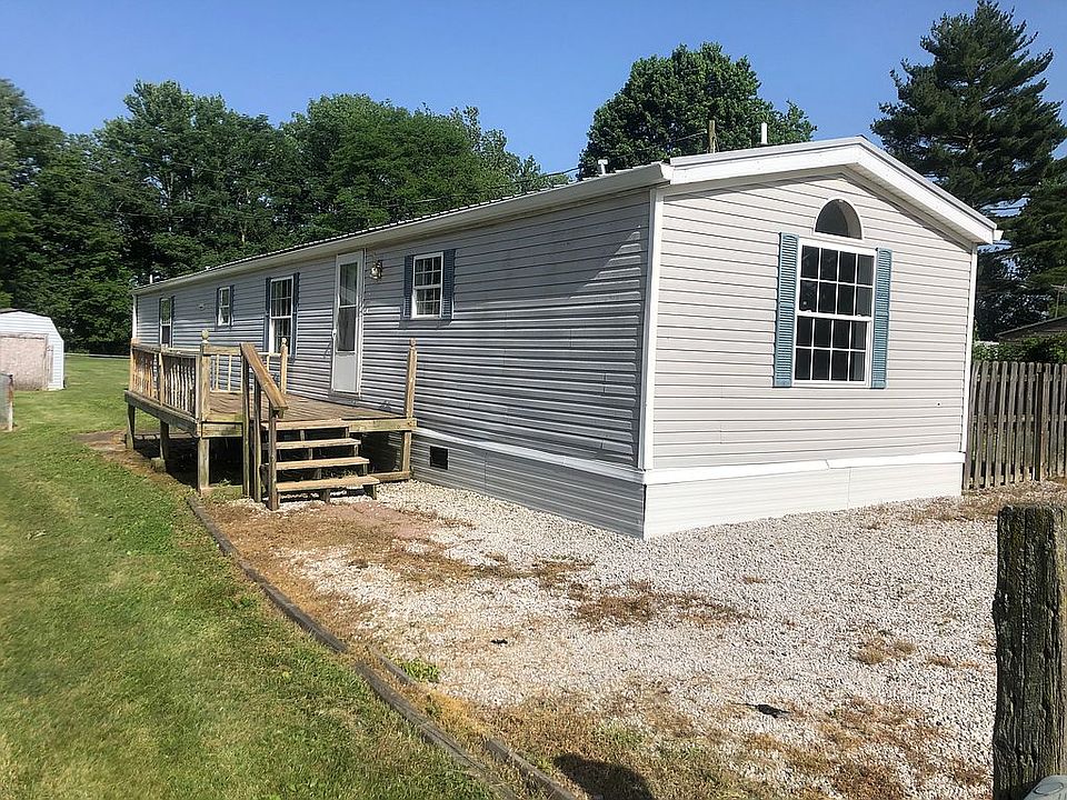 1999, 1,120 sq ft house trailer sitting on a 0.66 acre lot. Trailer is total electric, 3 bedroom 2 full bath; master bath has a garden jet tub. Trailer skirting is 2' insulated steel panels. The metal roof and septic are 10 years old. 35ft well with well pump. Trailer has both front and back deck. In 2020 the inside was remodeled; new carpet, laminate, paint, vanities, toilets.