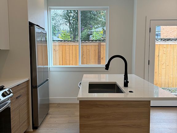 Newly built property - available for immediate move-in. Location, location, location! This home is located just three blocks off our beloved Hawthorne Blvd; 43 blocks of delicious eateries, coffee shops, boutiques, bookstores, markets and more. Bike score 99, walk score 91, transit score 50. Each home is 2 bedroom, 2.5 bathroom but each unit has their own character with different tile designs, some with walk in closets or vaulted ceilings and some have interior bike storage. This home is a sunlight filled, 850sf, 2 bedroom/2.5 bathroom. This home is a corner unit which offers additional windows throughout. The entry opens into the main entertaining space which features and open floor plan with beautiful plank flooring throughout the main level. The home features a spacious living room and designer kitchen with floor to ceiling cabinets, Carrera Marble counters, a stainless steel appliance package which includes a gas range, dishwasher, microwave and French door fridge, with access to your private, full fenced patio and powder room. Upstairs you'll find lush carpet throughout the hall and bedrooms, laundry closet with full sized, front loading washer & dryer and two bedrooms with ensuite. The light filled bedrooms have cathedral ceilings and private ensuite. The ensuite features floating vanity, designer tile work, heated floors and glass door shower. Outside you have a private, full fenced patio area perfect for a bistro set and gas grill. Non-smoking property. Resident pays for water, sewer, garbage, electric and gas. Resident to maintain private, fenced patio. Renter's insurance required prior to and throughout lease term. Not an accessible unit. Street parking.