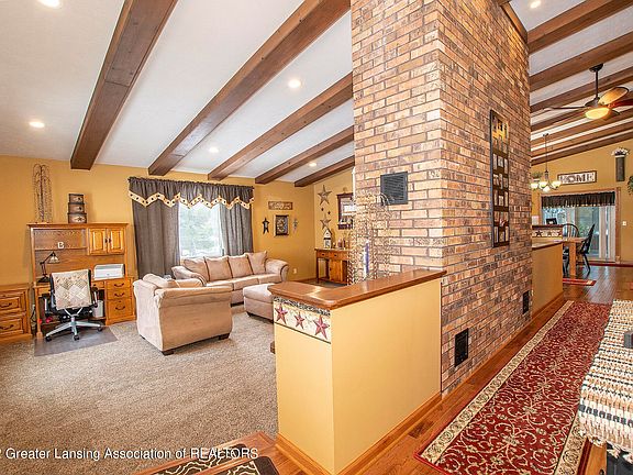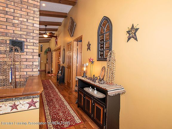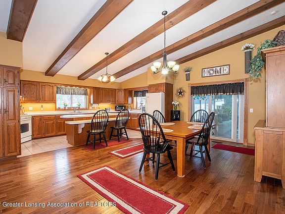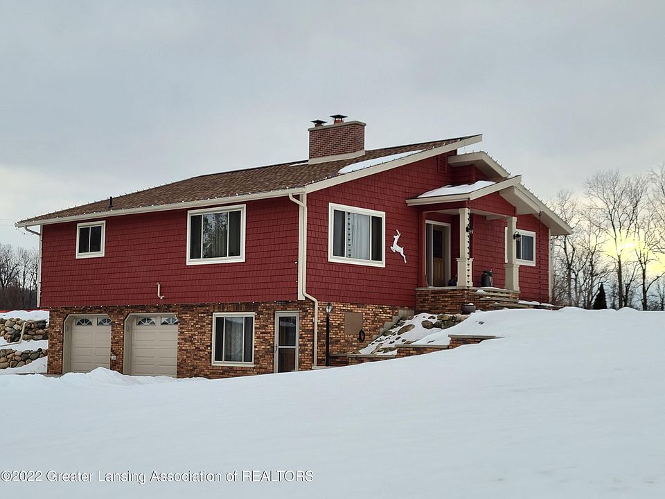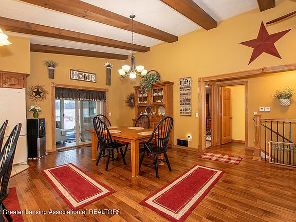 Wow! Excellent opportunity! Over 2800 SF of living area. 12 acres, with pond, pasture, and some woods. Just outside the Olivet city limits, yet a beautiful country setting. Main floor with open floor plan and cathedral ceilings. Spacious living room features a fireplace. Kitchen with plenty of counter and cabinet space. 3-season room offering great views of the country. Main bedroom with sliding doors to a deck. Lower level with the 3rd bedroom, full bath, oversized laundry room, and flexible family room. This room can be a 4th bedroom or office and has a separate exterior entrance. Must see to appreciate the extensive and detailed improvements completed within the last few years. 36*60 pole barn with cement floor and electric. Heated inground pool with stamped concrete surrounding patio.