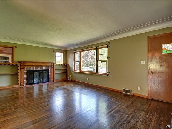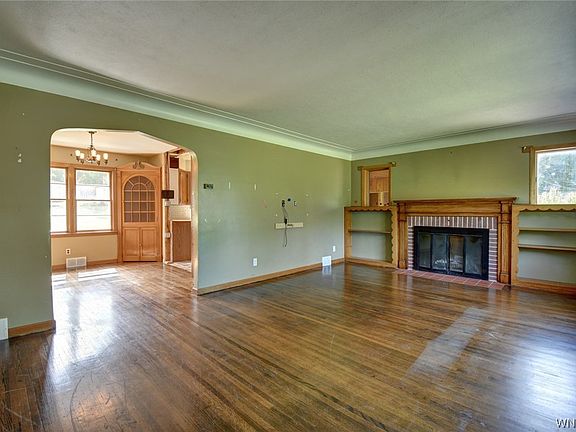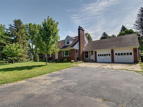 Great location with 1.5 acres in Clarence! Right across from Brookfield Country Club is this 4 bedroom, 2 full bath classic Brick home. The Kitchen needs a little TLC, but the mechanics are solid and it has a desirable layout. Tucked back away from the street, this property has hardwood floors, a formal Dining Room, large bedrooms (including a possible Main Bedroom on the first floor with a full bath - perfect for first floor living!). Upstairs has 2 more spacious bedrooms with tons of storage space and the 2nd full bath. The basement is set up for additional living space, home office or exercise areas AND even has walkout Bilko doors. The house also has an enclosed breezeway complete with "locker style" storage spaces and connects to the oversized 2 car garage. The garage gives you access to an additional storage space above the house and it has a rear door opener for ease. Walking out onto the back patio, you will love the greenery with tons of landscaping potential. At the rear of the property is a shed as well.