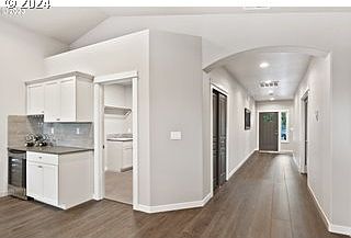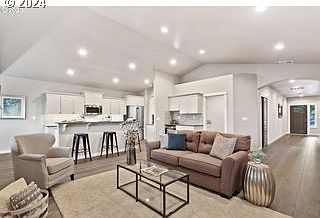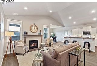 The expansive living room and adjoining dining area complete this eating and entertainment space, with the added appeal of an beverage center. The spacious and private main suite boasts a dual vanity bathroom, separate shower, and an oversize closet. The other two sizable bedrooms share a second bathroom. An additional feature of this already spacious home is the fourth bedroom/Den. This home features luxury vinyl plank throughout the main living areas and bedrooms, electric stove, gas fireplace, covered patio, window sills throughout and under cabinet lighting. Home comes with front and backyard landscaped with underground sprinklers and a 1 year home warranty. Pictures are of like homes. Woodland Ridge Community in Thurston offers beautiful mountain views, with nearby access to a grocery store, freeway entrance, schools, and coffee shops. With each floor plan, enjoy welcoming entries, open concept living room and kitchen areas, and ample storage.