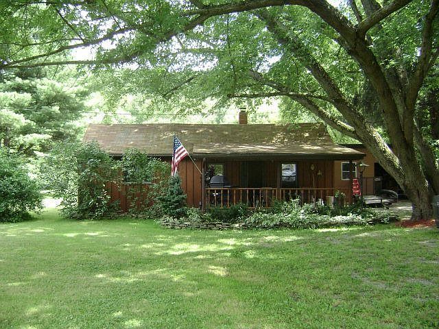 Adorable cottage style ranch w/ board & batton siding, rocking chair front porch. Surveyed 1.6 acres of land, oversized garage. Kitchen w/ neg. appliances & laminate floor, full bath w/ updated laundry. 3 bedrooms, level deck, gas grill stays. Wood stove in living room.