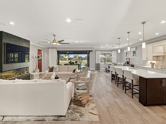 For the discerning Buyer demanding nothing but the best, welcome home! A meticulously maintained Pinnacle lake view model in the sought after Lakes At Waterway Village. This home offers multiple construction and post-construction upgrades, from the porcelain “wood plank” tile floor throughout to the stunning full outdoor covered chef's kitchen overlooking the saltwater pool and lake. Whole home impact glass, generator and automated hurricane screen for covered patio area. See upgrade slide for full details. Enjoy this gated community’s full resort style amenities, and active social calendar